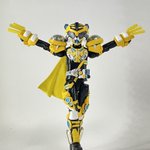 #今週のデザグラずかん 【装動】仮面ライダートラトラトラ・ビームビートフォーム【改造】 トラさんです。クロー代わりに付けたい爪…と考えて出たのがサイリウムのバルログ持ち。肩にミラーボールも付けてビームフォームと銘打ちました。 #ニチアサフィギュア改造部