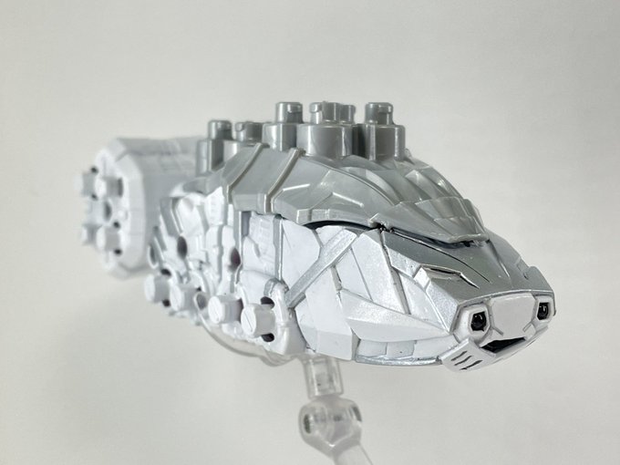#今週のデザグラずかん 【装動】仮面ライダーカナヅチ・アームドハンマー【改造】 ハンマーヘッドシャークのライダー。普通に泳げる。目はサメを下から見た時のチャームポイントであるへの字口に。 斜め上から見るとそれはそれで顔に見えるらしい。 #ニチアサフィギュア改造部
