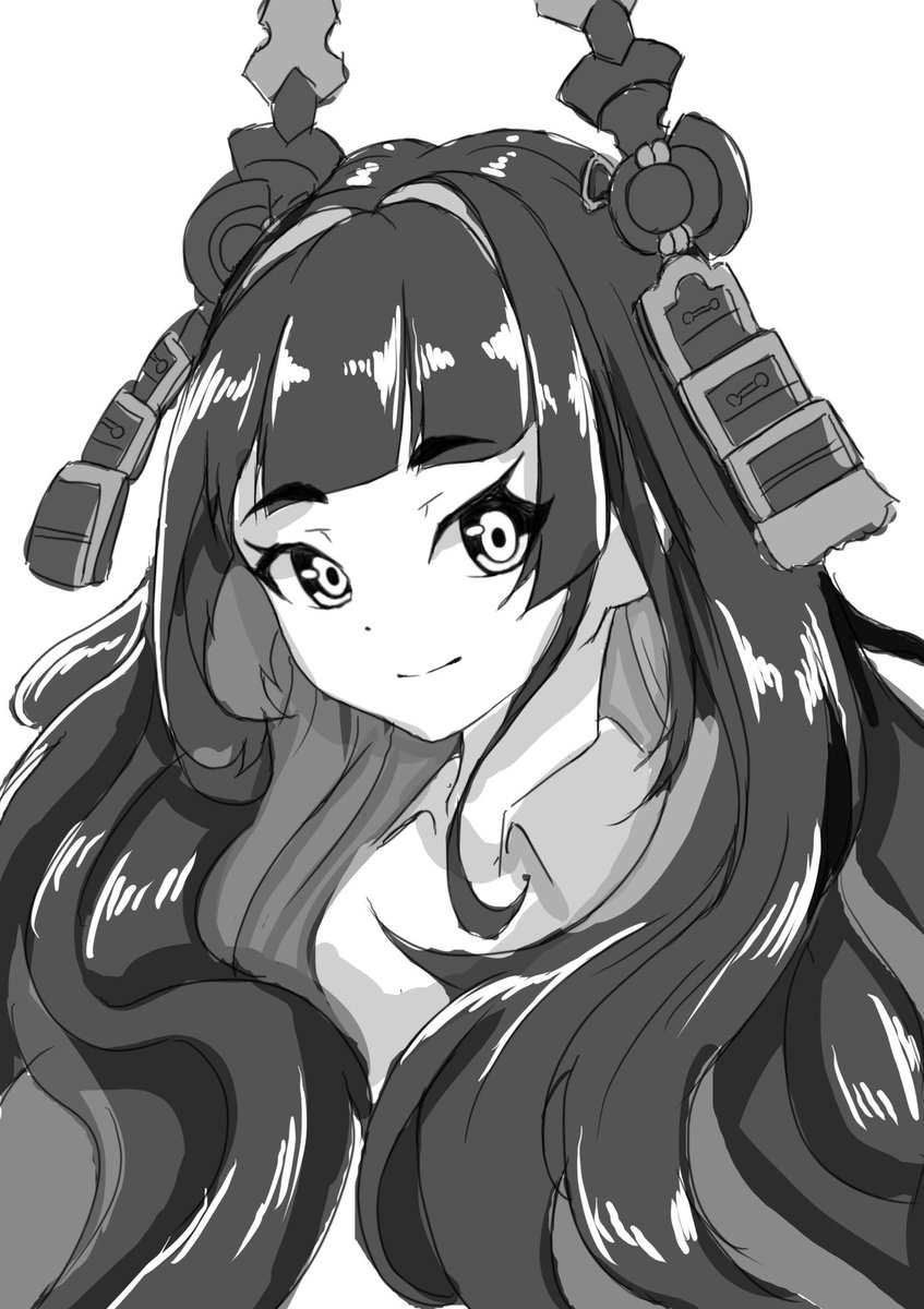 34 87 #天華百剣お絵かき部 ふうちゃん髪長いからツインテール分も全部下ろしていい感じにやったらモフってならないかなーっていう落書き 21/08/03 22:51