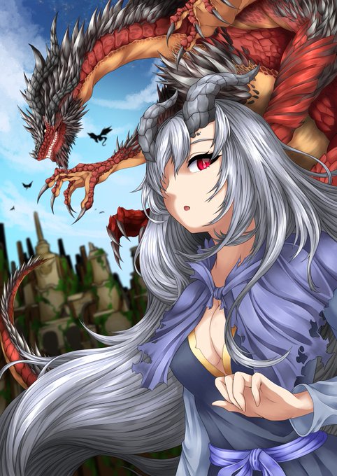 卒業制作:龍と竜人少女 #イラスト好きさんと繋がりたい