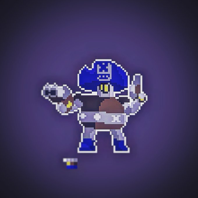 Pirate Bot! 🤖☠ Pixel art do meu Brawler super-raro favorito, o Darryl! Espero que gostem, logo mais a surpresa de 100 follows estará pronta, fiquem ligados! 💜+🔄=🥰🥰🥰 #Pixel #pixelart #pixel #drawings #fanart #BrawlStarsArt #brawlstars #pirate #ArtistOnTwitter