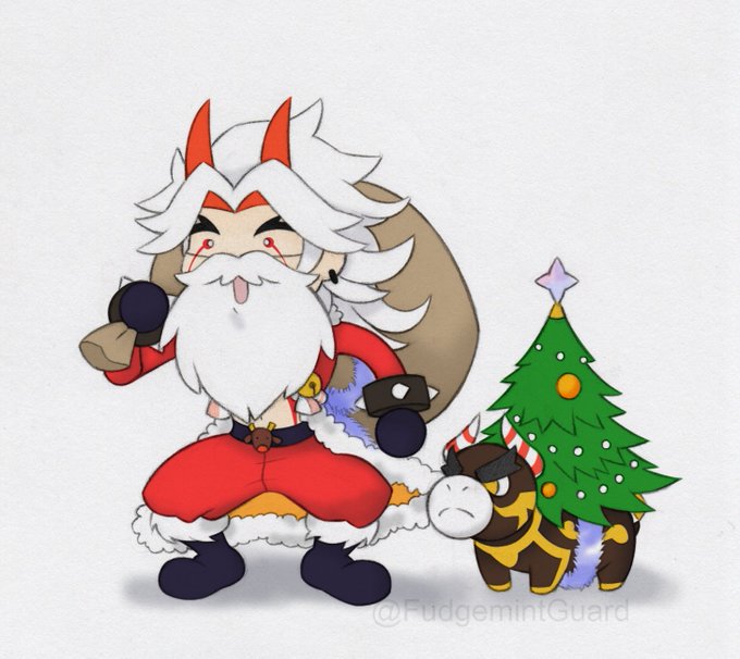 Jolly ol' Oni Claus and his trusty Christmas Cow are finally here with presents for all the good lil' kids! #GenshinImpact #原神 #Itto #Ushi #fanart #genshinimpactfanart