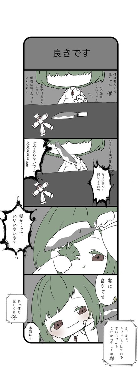 1 1 「切れないのです……」 #三コマ漫画 #オリジナル #漫画 #漫画が読めるハッシュタグ #イラスト #さいちゃんはちょっとズレてる #3コマ #3コマ漫画 #ギロチン #拷問 #拷問器具 #勘違い #木材 #ノコギリ #迷案 #DIY 22/11/04 10:59