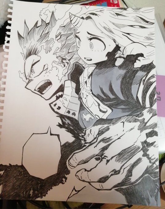 ヒロアカ出久とエリちゃん描いてみました 「エリちゃん……力を貸してくれるかい」 #ヒロアカ #僕のヒーローアカデミア #イラスト