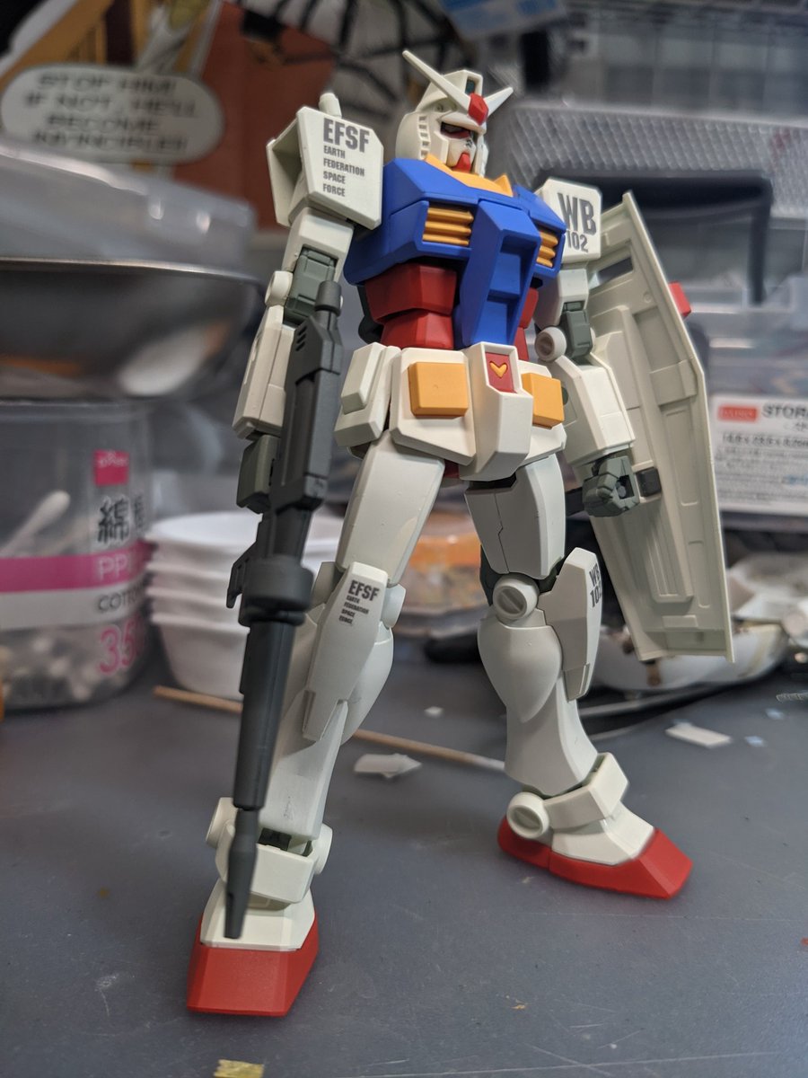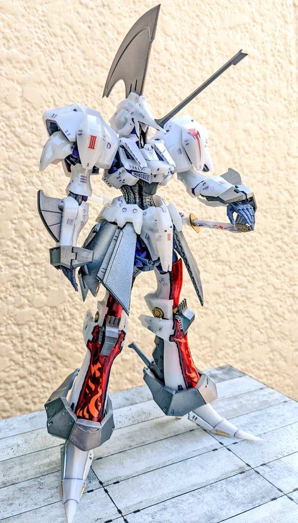 HGエルガイム完成だよ。 主な改造点は肘関節をイエサブパーツに交換してガワラ曲げ可能に・腹ブロックで数ミリ延長・右手をバスターランチャー持ち手に改修してネオジム磁石で保持などなど。ボディカラーはクレオスのブリュンヒルトホワイト。 #HBDのんちゃん #ノゾミスト模型部