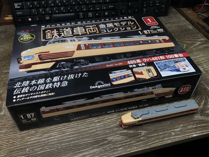 ご縁がありまして、ディアゴスティーニ様より昨日発売になりました #鉄道車両金属モデルコレクション を提供していただきました。 まずはとにかく箱がデカい。1/87の電車1両入ってたらそりゃデカくなりますわな…。 1/87ということで軌間は13mm、1/80の車両と比べると一回り小さいようです。 #PR