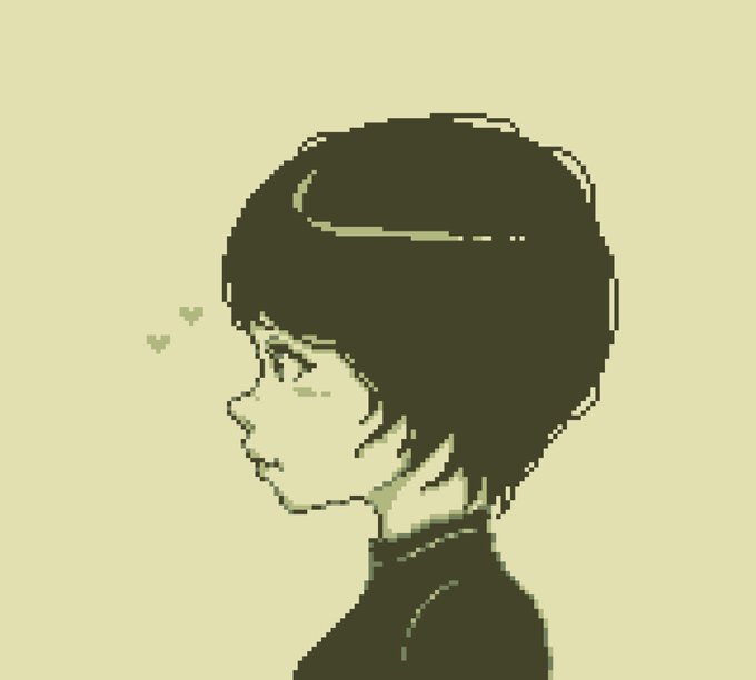 キッスする瞬間... \\\直前に目を開ける豚女さん👁️👄👁️/// ※明日色調を変えよう🐷 #illustration #pixelart #도트그림 #dotpict #dotpictart #dotpictapp #ドット絵 #gameboy #豚女 #piggirl #キス