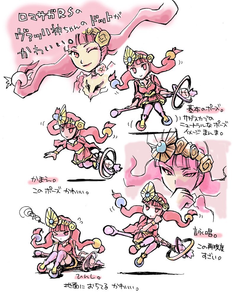 (ロマサガRS) これは最初にヴァッハちゃんが来た時に描いたやつなんですが、その後もいろんなスタイルがきて、すごく細かい原作再現で素敵なんですよ。 ヴァッハちゃん可愛いー。