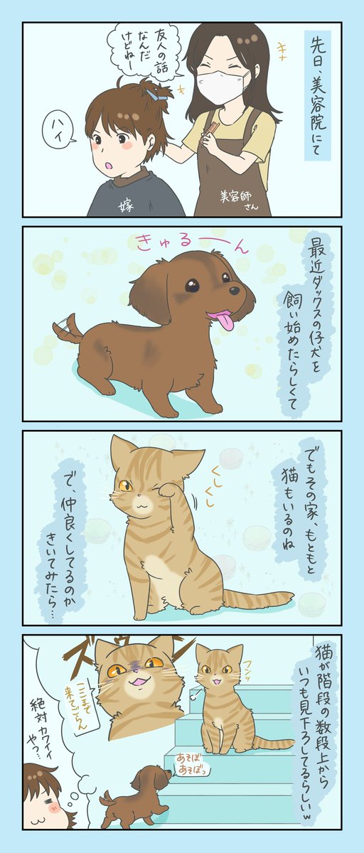 美容師さんとの話🐶🐈 想像したら可愛くてほわほわしました🥰 #猫のいる暮らし #犬のいる暮らし #漫画が読めるハッシュタグ
