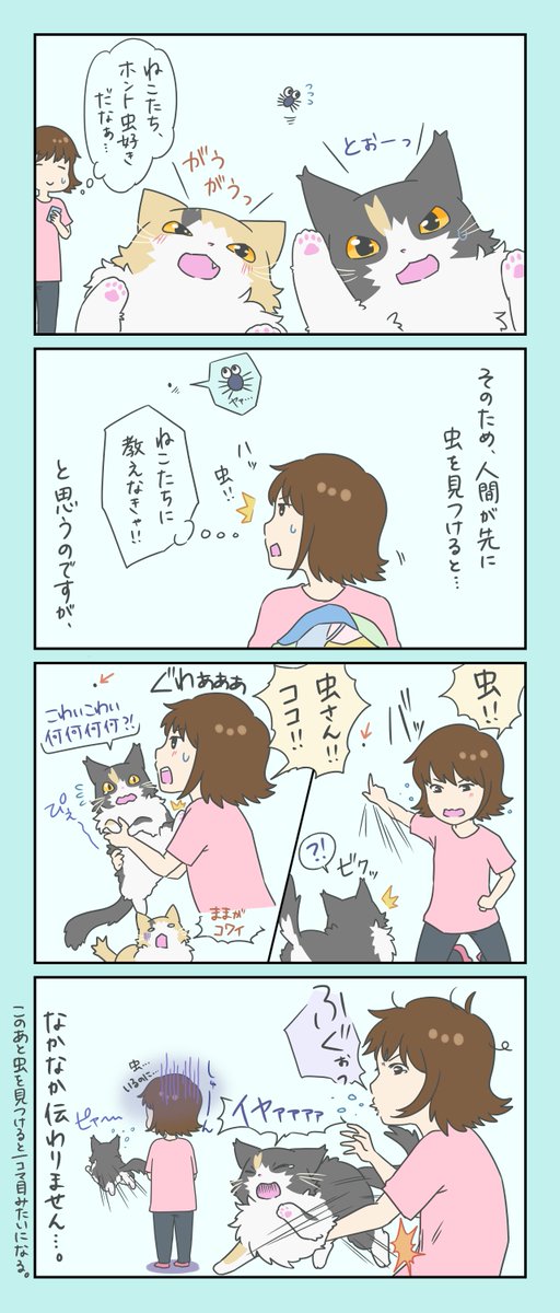 3 37 虫と猫と私。必死すぎて引かれる…( ´•ω•` ) #猫漫画 #猫のいる暮らし #漫画が読めるハッシュタグ 21/07/13 21:49