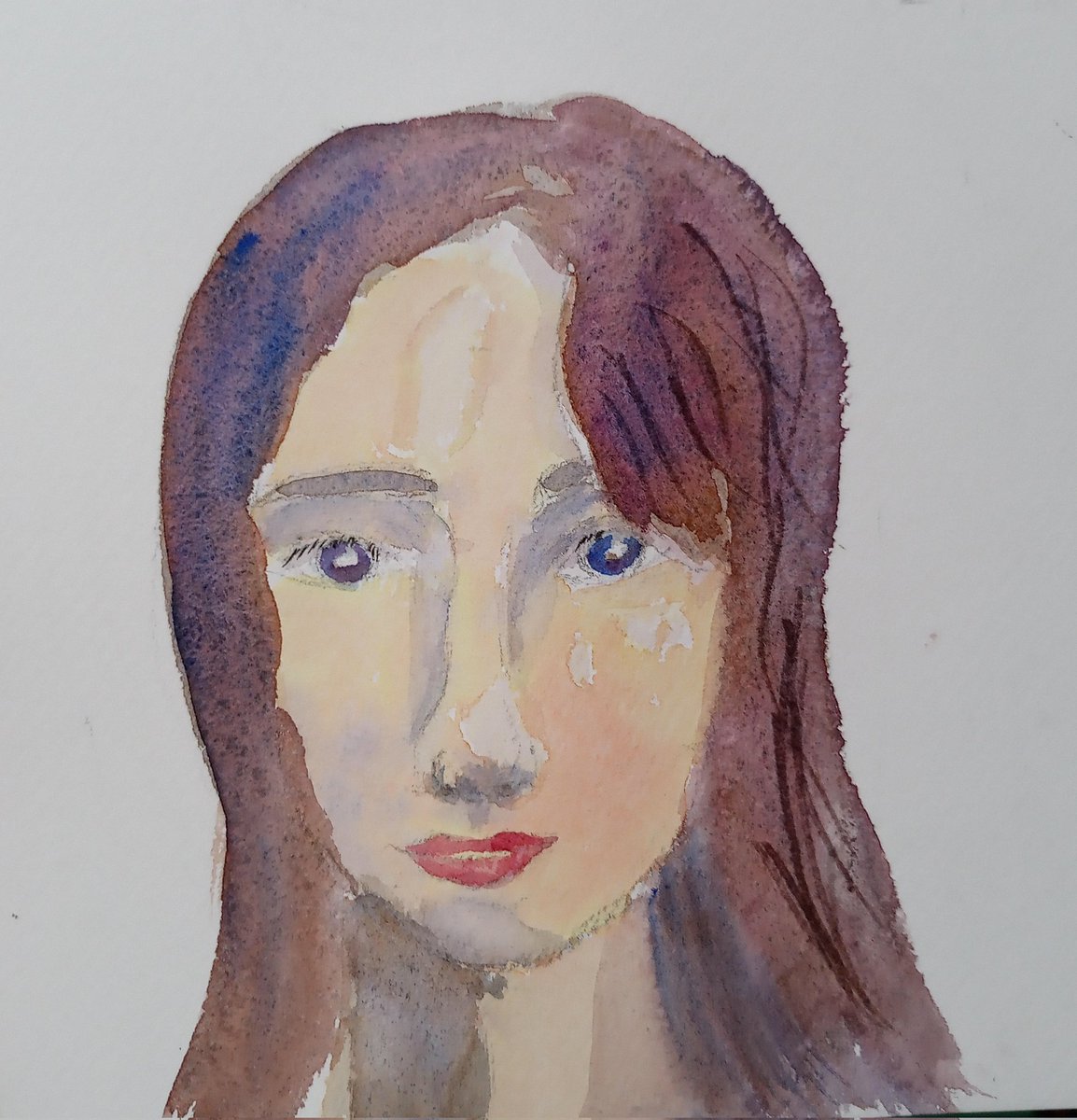 とある女性のお顔 人物画を練習してます〜 #水彩画