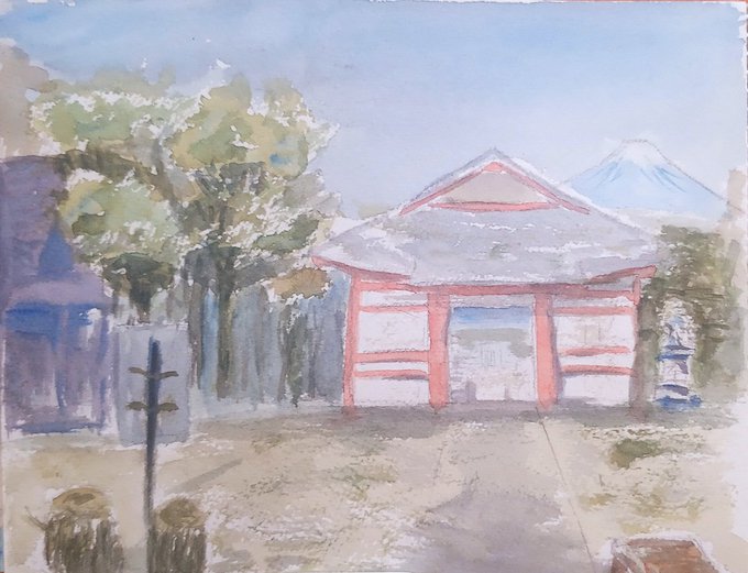 1 2 富士山本宮浅間大社へ行ってきました〜 #富士山 #水彩画 #絵描きさんと繋がりたい #合成 22/12/29 23:16
