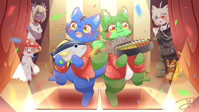 ぬめゲコらいふさん活動2周年記念動画に向けてイラストを描かせていただきました!めでたい🍣✨ twitter.com/numegekolife/s…