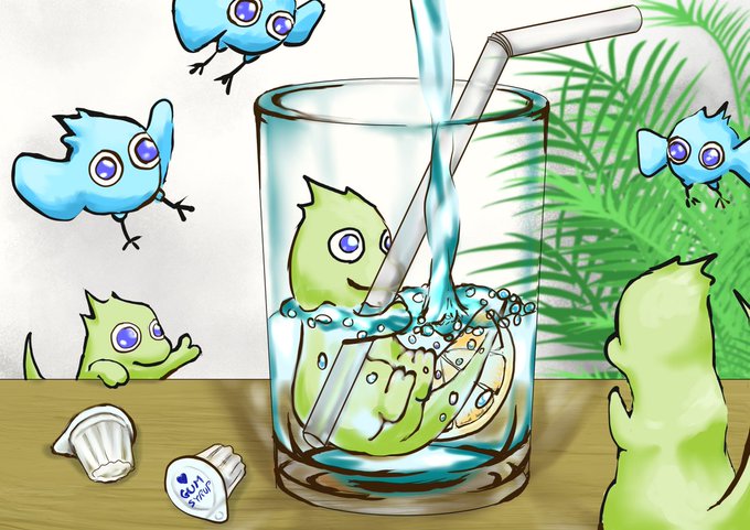 かふぇできゅうけいだ! なんかすごく時間掛かった。暑い…氷も入れて…。 #イラスト #絵描きさんと繋がりたい #イラスト好きさんと繋がりたい #みんなで楽しむTwitter展覧会 #art #ゆるいイラスト