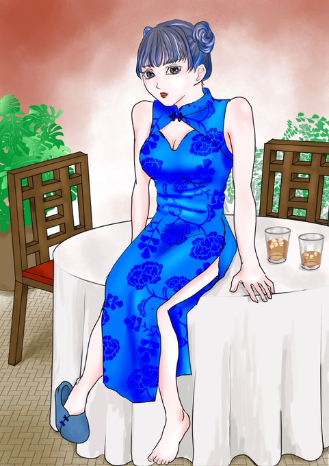 たまには人間を描きたい。 閉店後の中華料理店、のチャイナ服な女の子。 資料見つつポーズ練習。 #イラスト #女の子イラスト #絵描きさんと繋がりたい #みんなで楽しむTwitter展覧会 #sns秋の芸術祭2022 #イラスト好きな人と繋がりたい