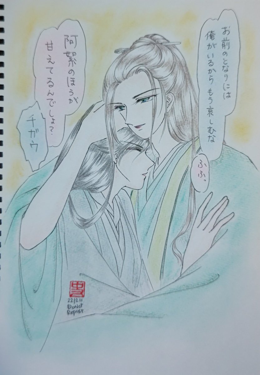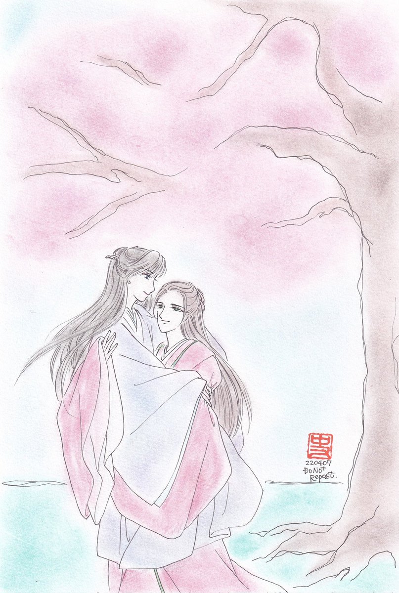 お題「幸せ」お借りしました✨ 先日、老温を泣かせてしまったのでそれの対になる絵を描こうと思いました。 『有我在』 幸せはこの腕の中にある✨✨ 簪を贈った後の温周💕 #春の山ワンドロワンライ