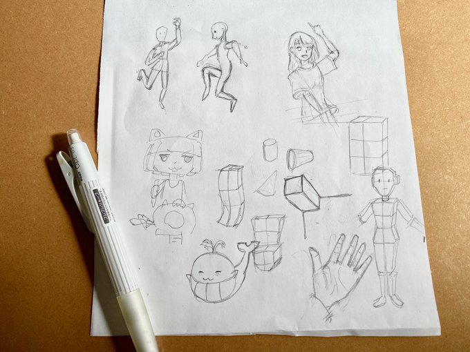 4 102 YouTubeの、みにまるコミックさんの動画で箱を使った人体の描き方を視聴しながら描いてみました。 何回か描いているうちにバランスが整うと思いますので、慣れたら #みになま とか #朝ドロ にトライしてみたいと思います。 22/01/23 21:41