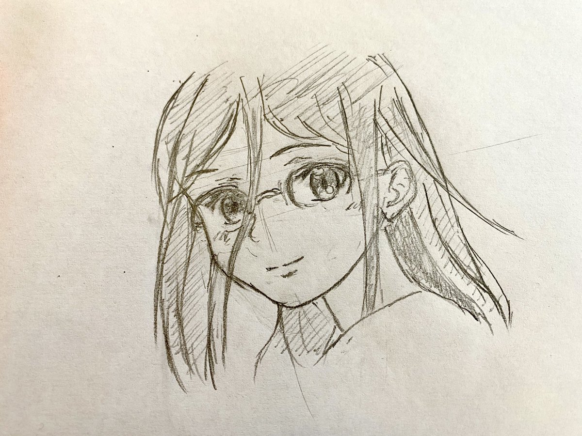 自分をモデルにして女の子を描いてみました😊 ポーズ取り放題ですが、多少なりとも精神的ダメージを喰らうのが欠点ですね🤣