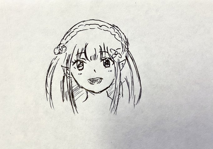 お昼休みに、ボールペンでエミリアさん描きました😊