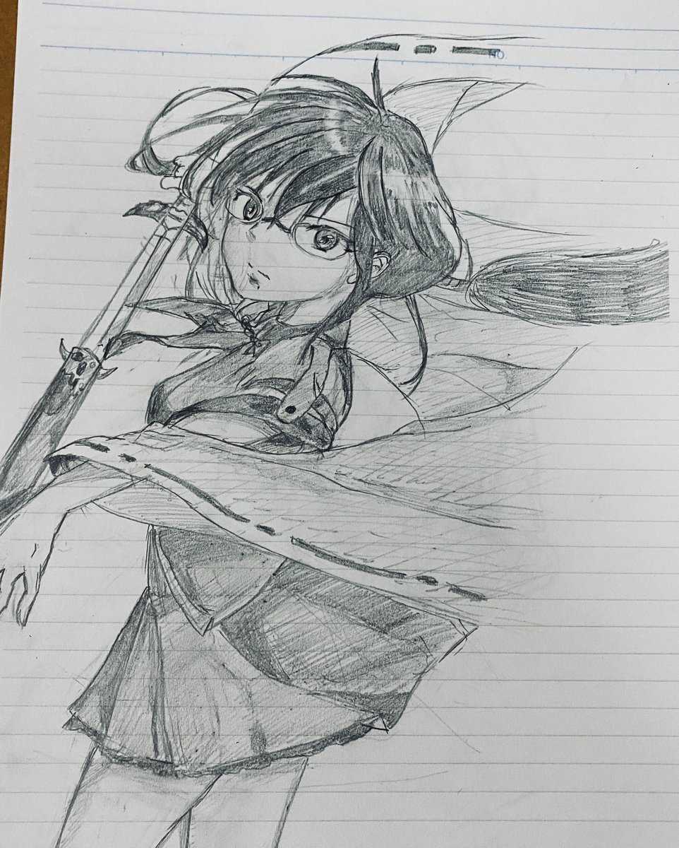 1 65 今日の模写はちょっと大変だったので、あちこち省略して何とか描きました。 BLOOD-Cという漫画のようです😊 良い練習になりました。 ではお休みなさい🥱 22/12/25 22:12