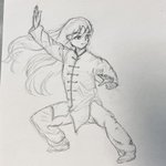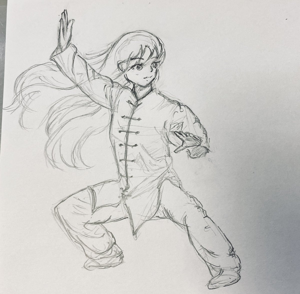 お昼休みです。 お掃除のお姉さんより、中国拳法のようなのを描いてとリクエストあったので、適当な写真を参考にして描いてみました😊 お昼ご飯の時間が…😆