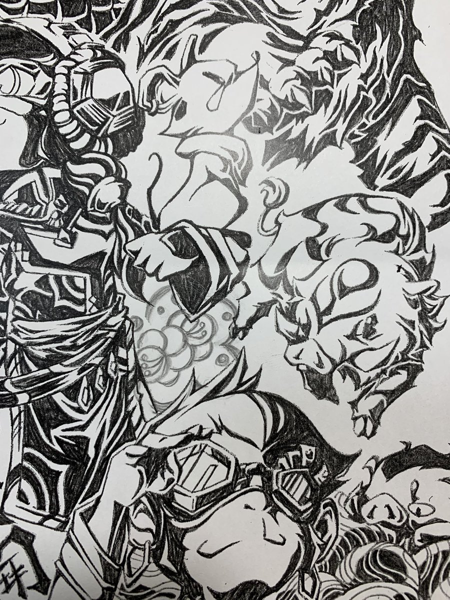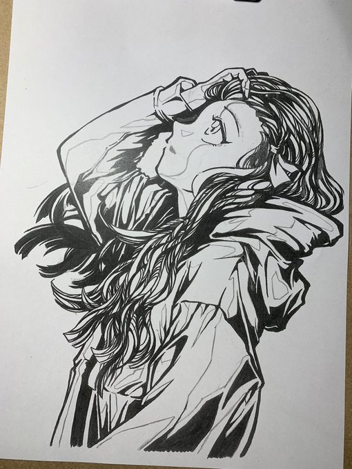 途中経過😃✨🎶さて、これをカラーに、しようか、白黒で行こうか💦 #芸術同盟 #アナログ #RTで私を有名にしてください #イラスト #鬼滅の刃 #二次創作 #私の絵柄が好みって人にフォローされたい