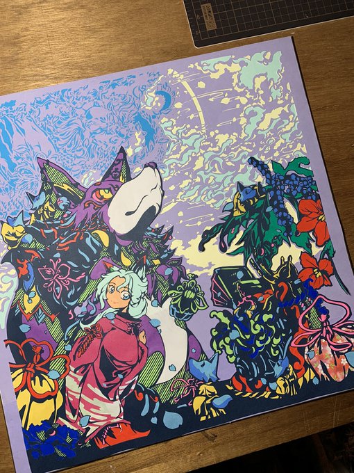 やっと、人物を切り終えました💦 まだ先はながい? #芸術同盟 #イラスト好きさんと繋がりたい #アナログ #切り絵民歓迎 #オリジナル #色紙さいず #私の絵柄が好みって人にフォローされたい #RTで私を有名にして下さい #早く仕上げて、次に行きたい