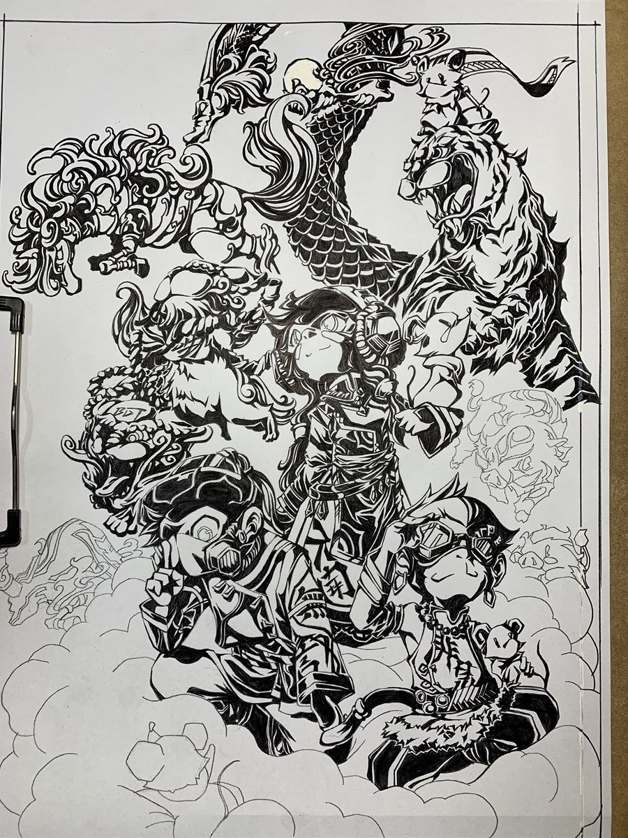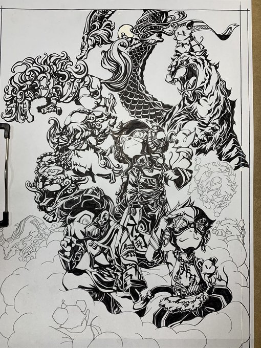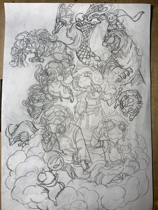 やっと全部のキャラクターが、一通り、描けたかな😃✨ #芸術同盟 #アナログ #下絵 #イラスト好きな人と繋がりたい #私の絵柄が好きな人にフォローされたい #干支 #切り絵 #RTで私を有名にしてください