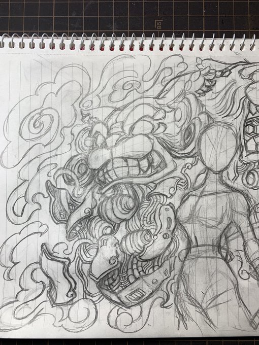 次回作のラフ✨ 何となく《阿吽》を描いてみたくなった💦 更に描き込みしなければ😆 #芸術同盟 #オリジナル #アナログ #下絵 #阿吽 #RTで私を有名にしてください #イラスト好きな人と繋がりたい