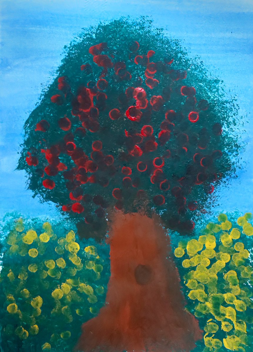 1 5 『赤い実のなる木』 #絵 #作品 #アクリル画 21/07/09 11:47