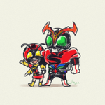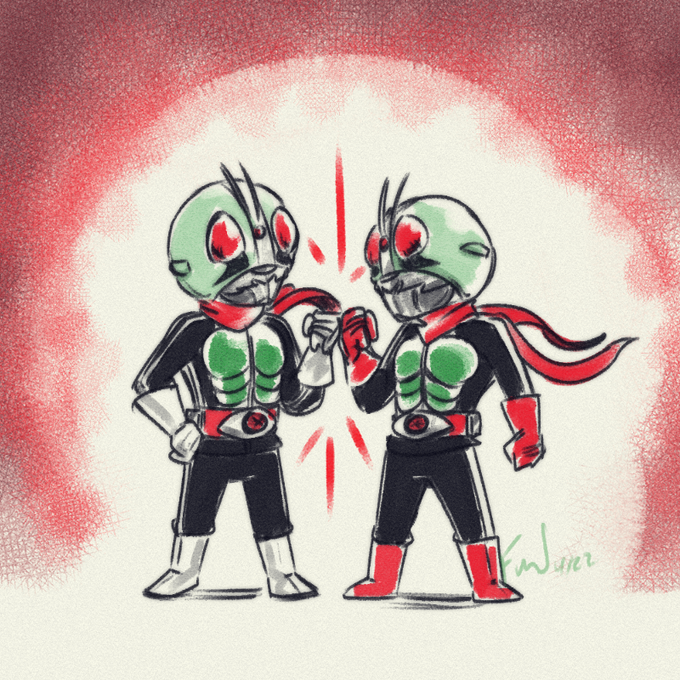 I am an #ArtistOnTwitter. I like mostly drawing girls doing awesome and/or romantic things, but I sometimes draw dudes too. But mostly Showa Riders lol