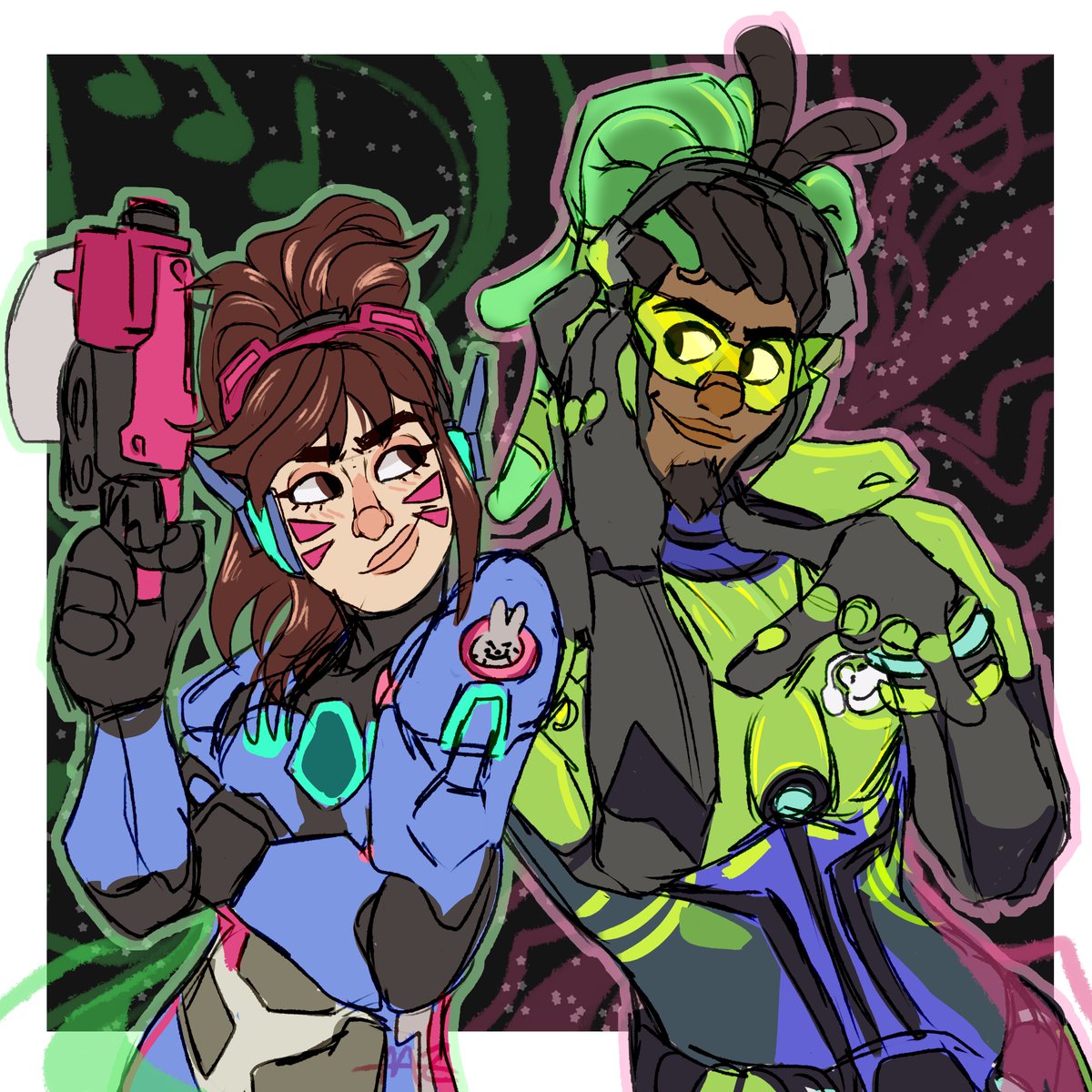 Been playing OW2 with some of my pals, so here's D.va and Lucio! #Overwatch2 #Overwatch #OverwatchFanart #fanart #art #artistsontwitter