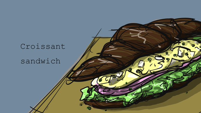 おはようございます🍂 クロワッサンサンド描きました🥐 オスマン帝国(トルコ🇹🇷)に勝利したウィーンの人たちが、トルコの象徴である三日月型のパンを作って食べ始めたことがクロワッサンのはじまりなんです🤓