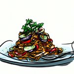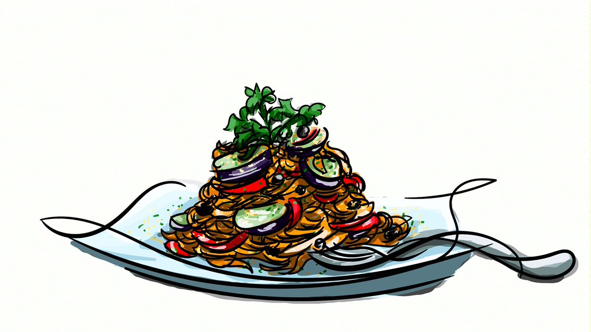 生パスタ描きました🇮🇹 毎月7日、8日は生パスタの日なんだとか。 「茄子とパプリカのトマトソース」