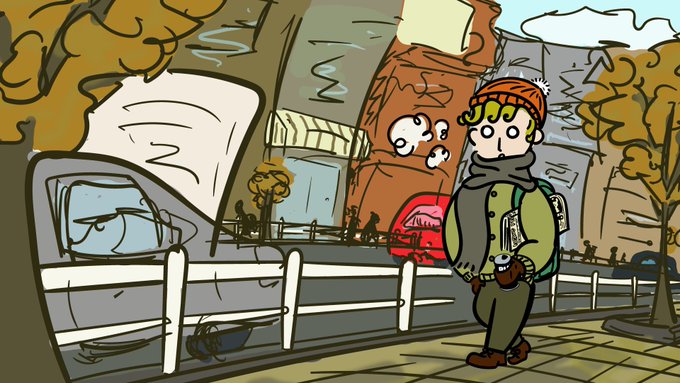 おはようございます🍠 寒いから、厚着の青年描いてみました。