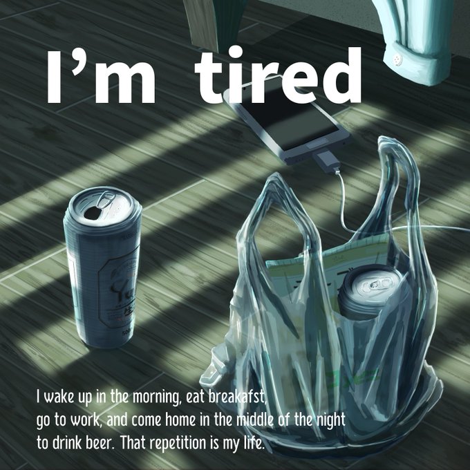 おはようございます! 「I'm tired」描きました。 #みんなで楽しむTwitter展示会