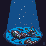 Finally, we find it! This #shipwreck has been sitting on the #ocean floor for over a century. @Pixel_Dailies | #pixel_dailies | #pixelart | #ドット絵 | | #light | #darkness | #seabed | #discovery | | #wreckage | #ship | #galleon |
