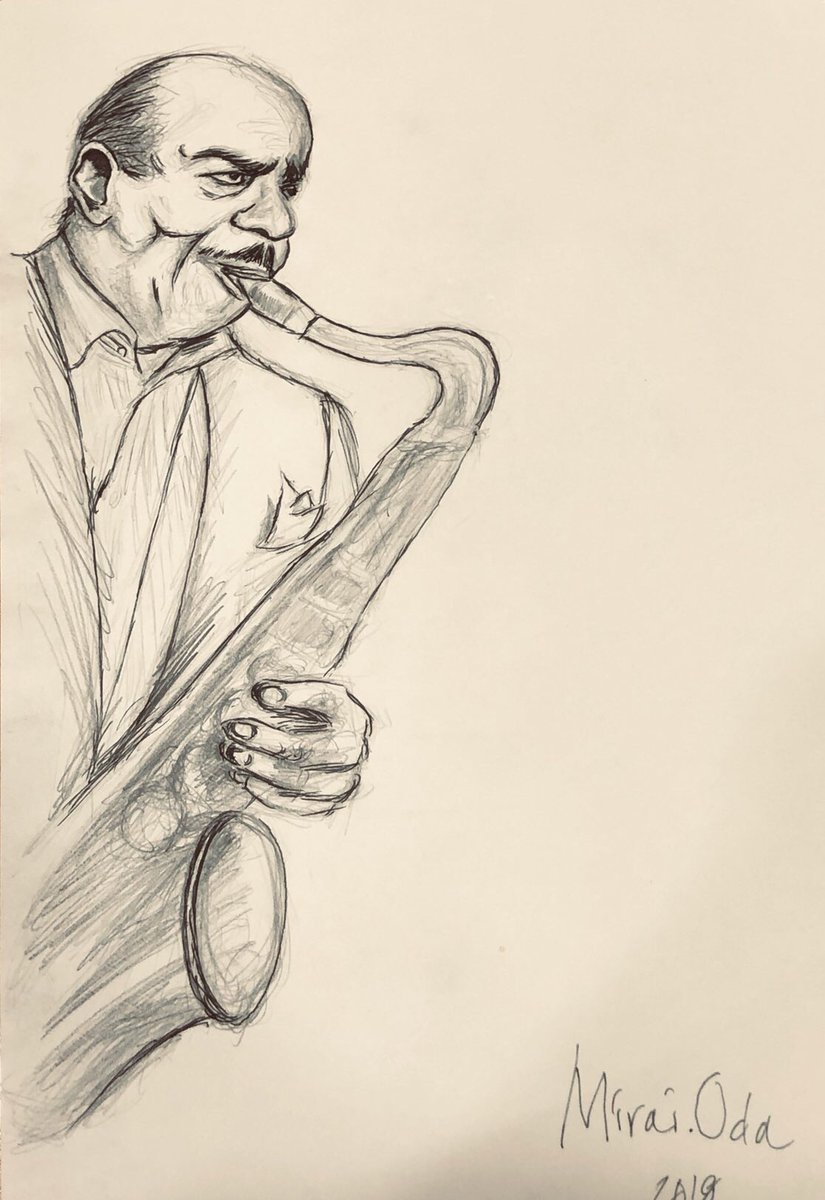 どうしてもご本人にお渡ししたくて、Liveに向かう道中描いたBenny Golson。ヴォーカリストの山岡未樹さんにお願いして、恐らくBenny氏の元へ渡ったのではないかと… #Bennygolson #ベニーゴルソン #Jazz #ジャズ #Theterminal #ターミナル #ペン画 #ボールペン #イラスト #illustration #描いてみた