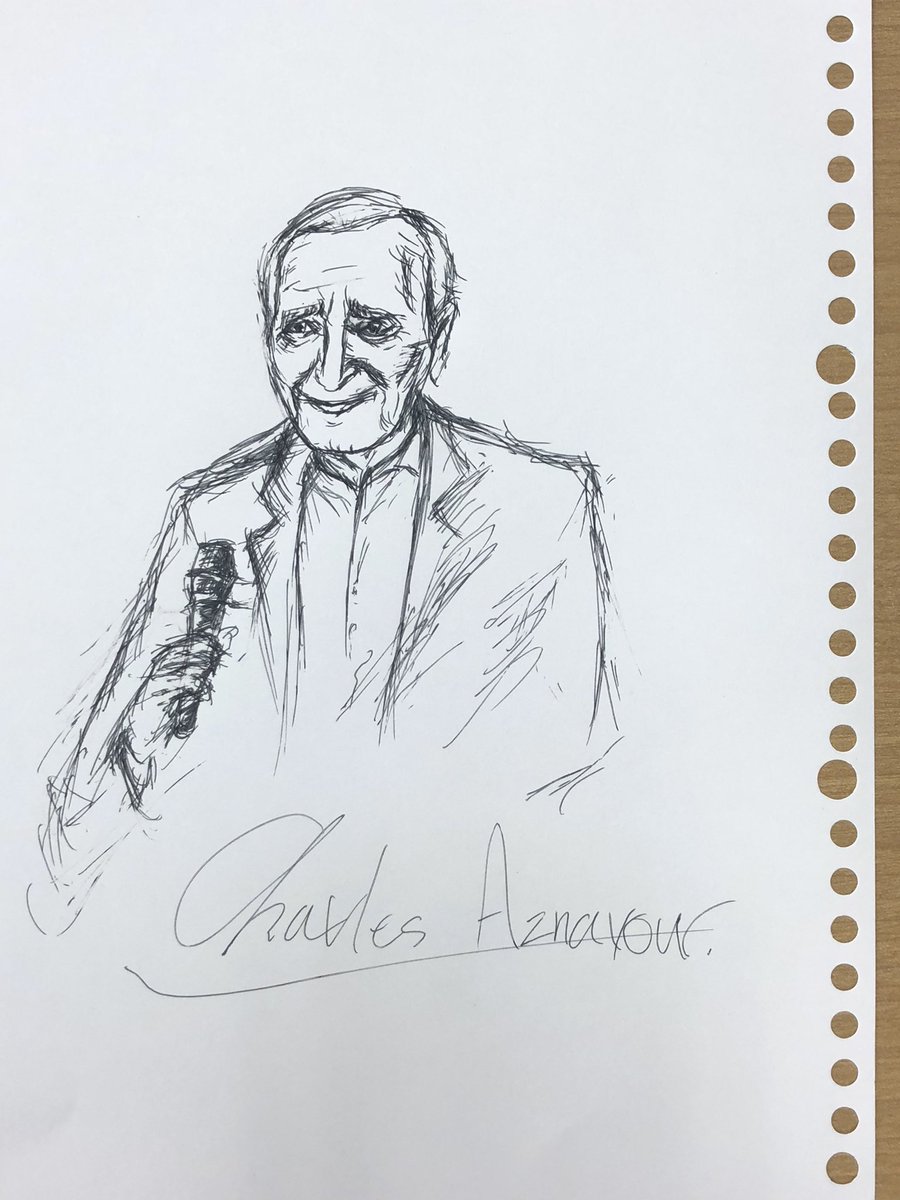 亡くなられてしまった事があまりにショックで、授業中に描いていたCharles Aznavour。 #シャルルアズナヴール #シャルルアズナブール #Chanson #シャンソン #France #フランス #絵 #ボールペン #ペン画 #イラスト #illustration #描いてみた