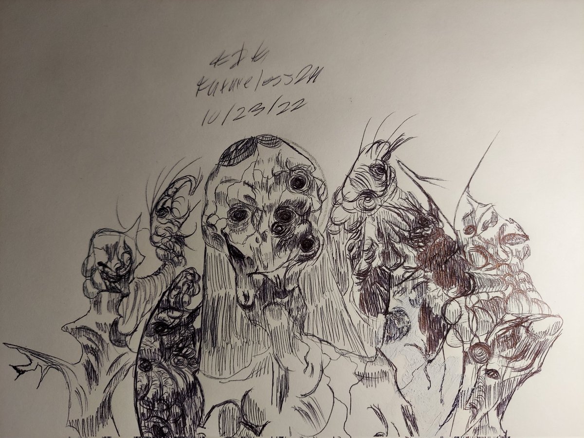 #inktober 26 - Hallucination beings I've encountered over the years. I tend to have them when I stay up late. #inktober2020day26 #horror #HorrorArt #Help