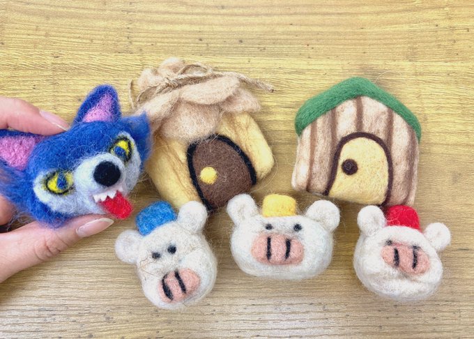 1 4 羊毛フェルト 🐷三匹のこぶたシリーズ🐺 マグネットになる予定です♪ 家は何の材料で作ったのか分かりやすくする為何度と工夫して制作しました💪 #羊毛フェルト #三匹のこぶた #絵本 #ハンドメイド 22/01/22 17:49