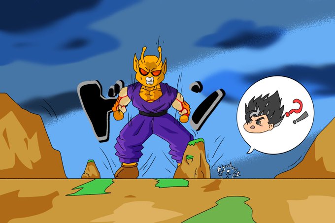 おれんじピッコロが巨大化!(初めて背景描いてみた) #ドラゴンボール超スーパーヒーロー #イラスト