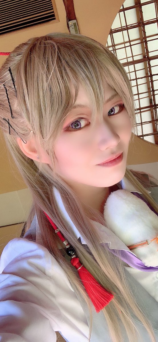 ぁぉぇちゃん 結い上げ御髪のサラサラ感ですね! 柔軟剤漬け+トリートメント+シリコンスプレーしてめちゃくちゃ梳いてます!そして毎度ポニテぶん投げてもらってます!w 直近ウィッグがコス初めてから6代目なので割と1年くらいで新調してます…😂 極は白装束の布量と透け感ほしかったので自作しました