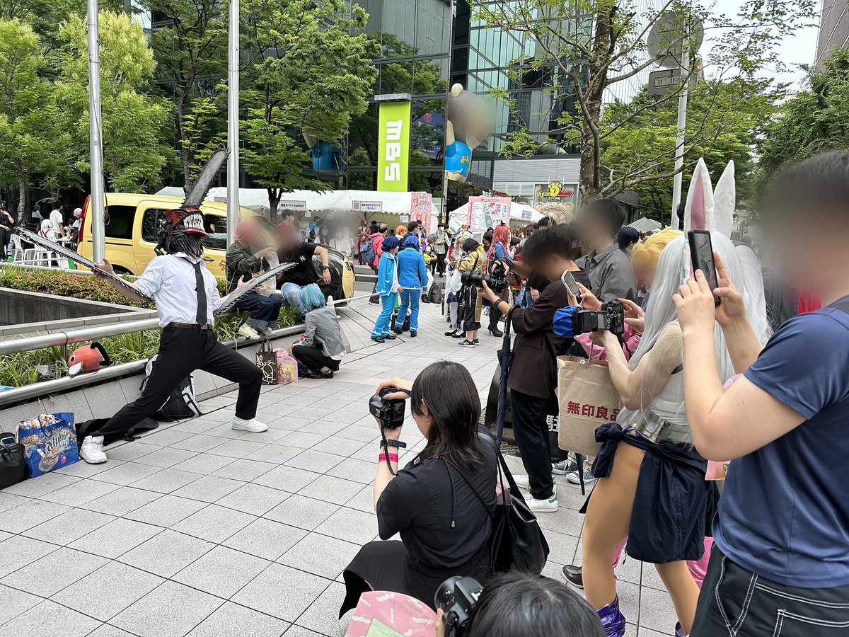 上を向き続ける辛さに耐え続けてて 周りがどんな状況か分からなかったけど、 こんなにカメラを向けられていたとは…。 📷佐野らびさん @SanoRabbit #アコスタ梅田茶屋町 #チェンソーマンコスプレ