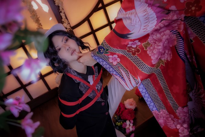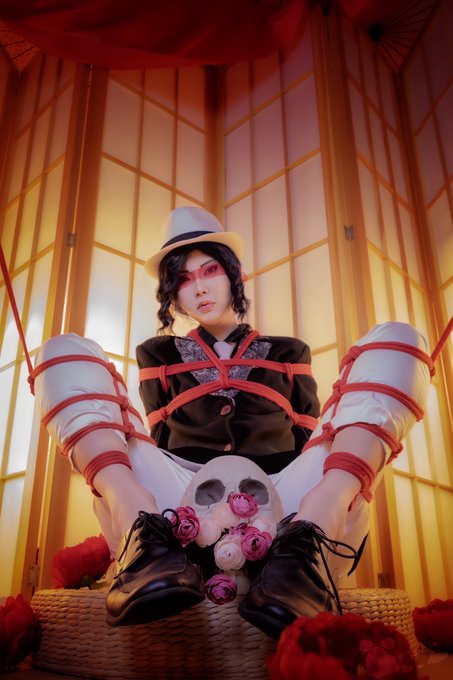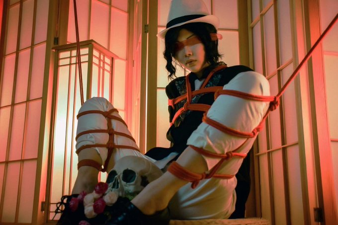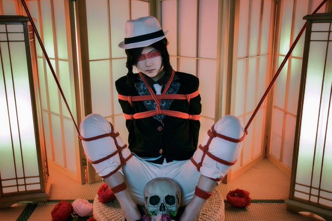 Got to start posting this set on twitter 🙏🏻 [This would be a repost, full set up on Instagram.] 📷: pewpewpalette 💻: fuyumimirai 💪🏻: yukiusagi.cos 🪢: itssssssjun & JM #鬼滅の刃 #KimetsuNoYaiba #鬼舞辻無惨 #MuzanKibutsuji #コスプレ #Cosplay #縛り #Shibari