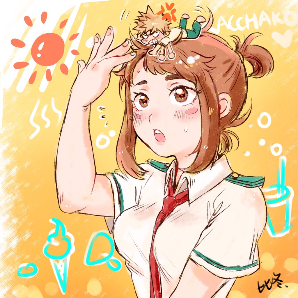 #勝茶ワンドロ (@kaccha_1dr ) #勝茶 #kacchako Little Bakugou& ochaco🧡 Hot summer!🍦