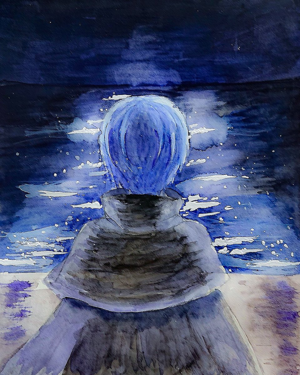 10 56 #クリエイターさんの夜っぽい作品が見たい 闇に包まれた海 #黒執事 #水彩画 23/06/11 14:18