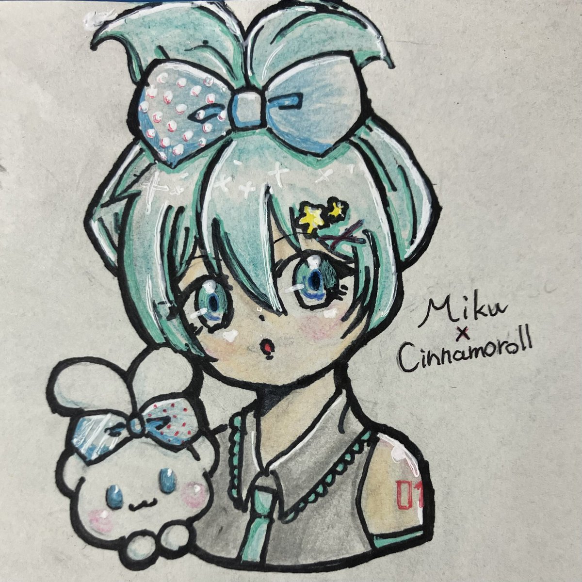 ひさツイートだよ シナみくを描いたんだけどミクさんの顔がビミョーだね。誰に見られても恥ずかしくない絵を描けるように頑張る #シナミク #シナモンミク #シナモン #初音ミク #イラスト