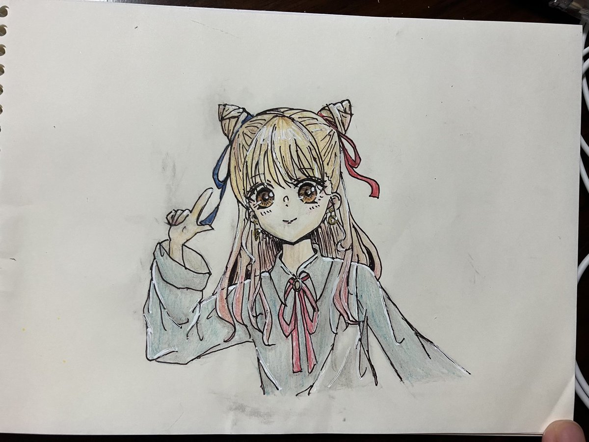 なんか上手くいった。※母のメモの裏側です #ぴーまるあーと #アナログ絵