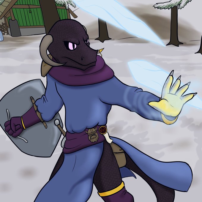 0 5 this is a commission for @pizz_soff of their character Olm'Ist firing an arrow infused by a raptor spirit. #kobold #commission #furry #scaly #DnDcharacter #dndart 21/12/18 15:15